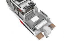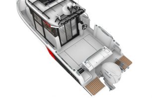 В «рыболовной версии» катер оснащен широкой раздвижной 3-х секционной стеклянной дверью на корме, а также боковыми дверями. Широкие боковые проходы обеспечат безопасное передвижение с кормы на нос. Огромное внутреннее пространство обеспечивает сохранность всех необходимых снастей для рыбной ловли. В версии для «семейных путешествия» Merry Fisher 795 Sport предлагает удобную площадку с раздельными сиденьями расположенную позади рулевой рубки.