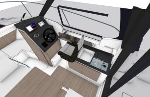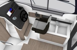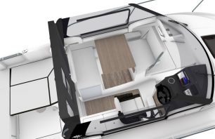 Комплектация "PREMIERE" включает: регулируемая спинка за столом в салоне, сдвижной люк рулевой рубки, подушки на кормовую скамью кокпита (сиденья и спинки), сдвижное окно по левому борту, второй стеклоочиститель по левому борту
