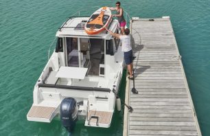 Боковая дверь на кокпите, как на старших моделях 895, 1095 и 1295, облегчает доступ при швартовке лагом.